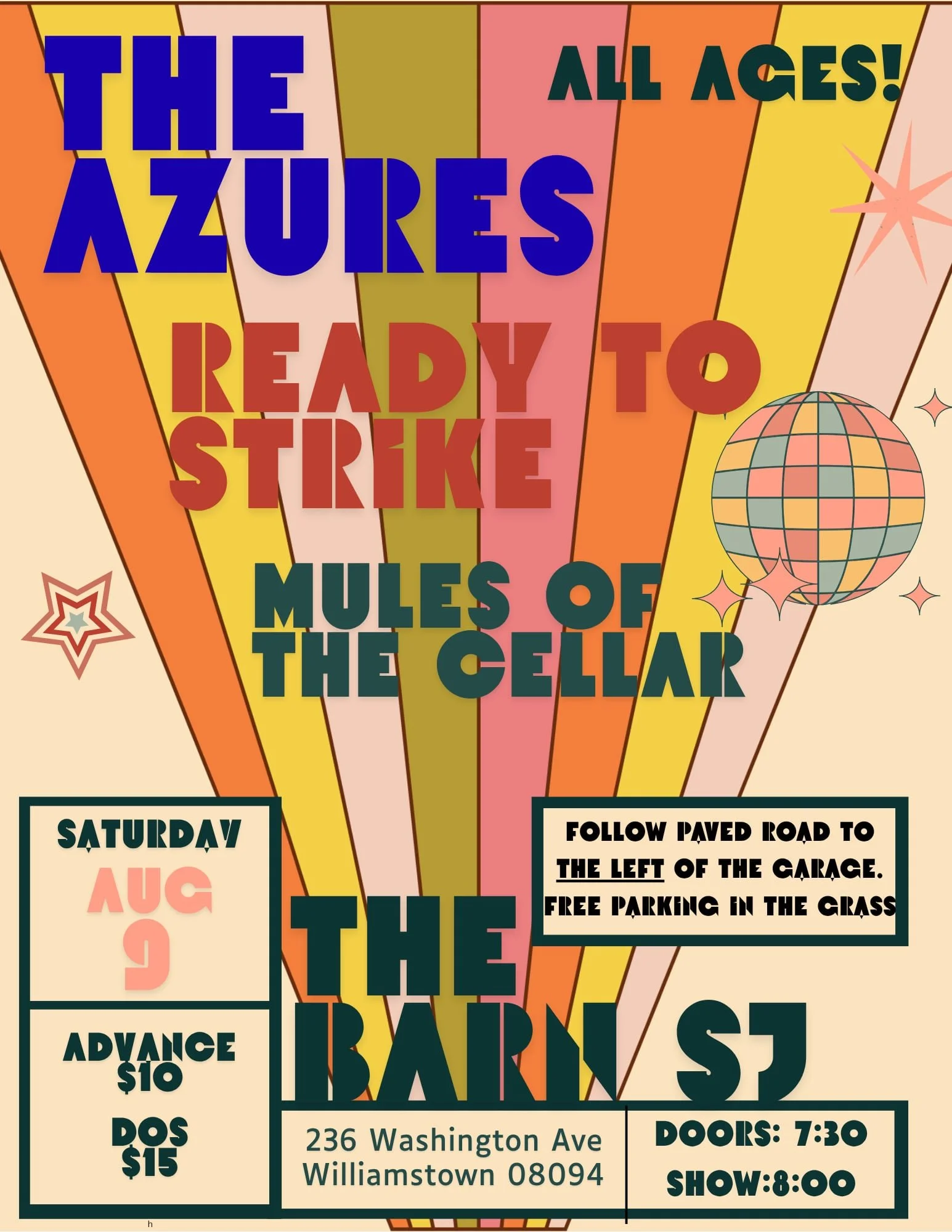 STRIKERS! We're headed down to south NJ to rock the roof off The Barn with The Azures and Mules of The Cellar!! Get ready for a kickass night of rock n roll!